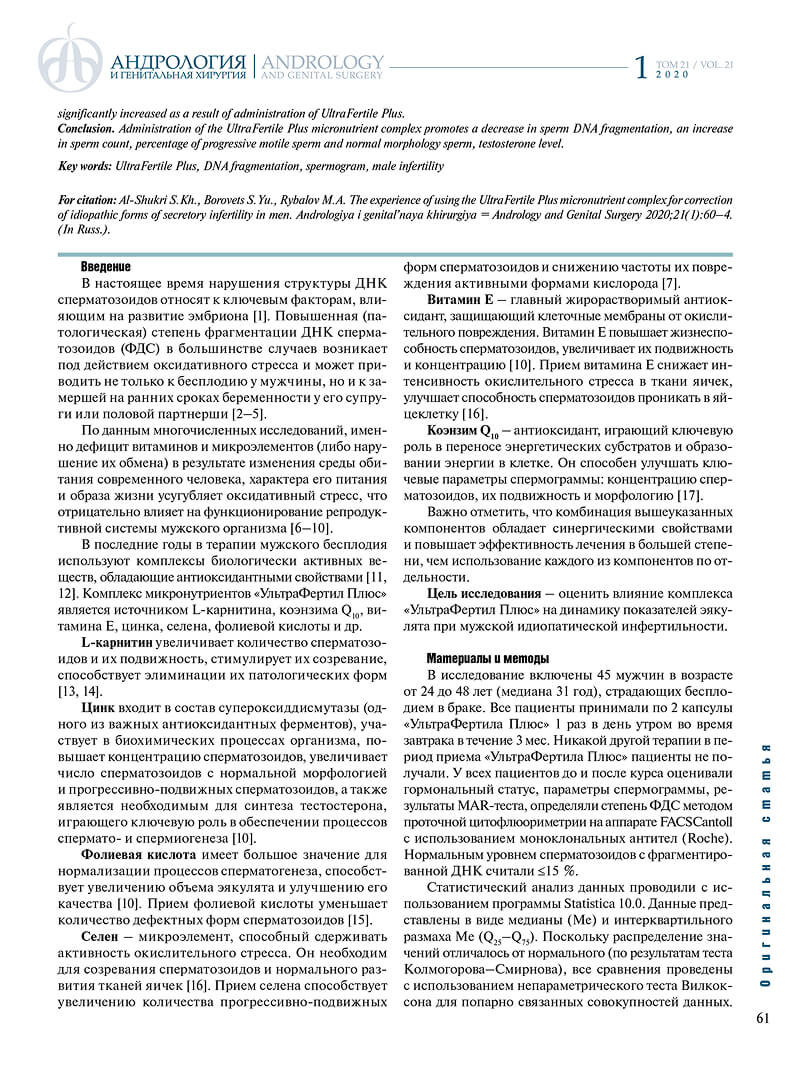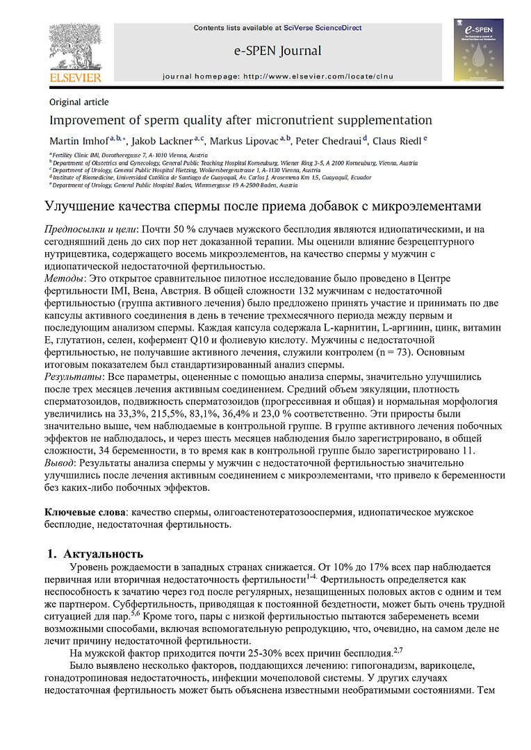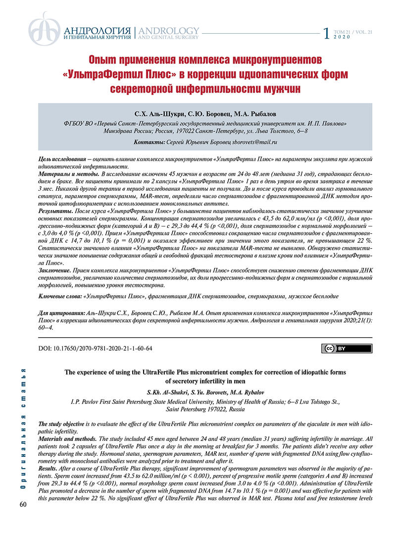 УльтраФертил Плюс прошел международные и российские исследования, включен в книгу «Клинические рекомендации. Общая андрология»
